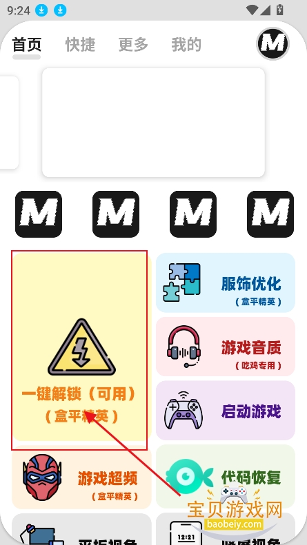 1、进入首页,点击“一键解锁”