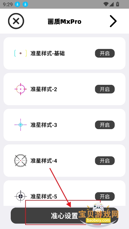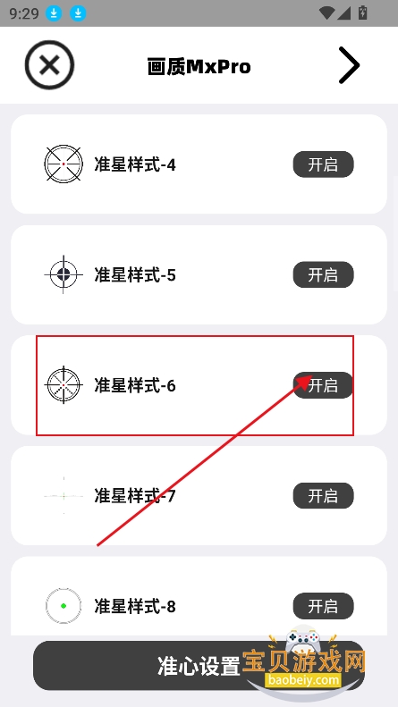 4、最后选择准星样式,点击开启