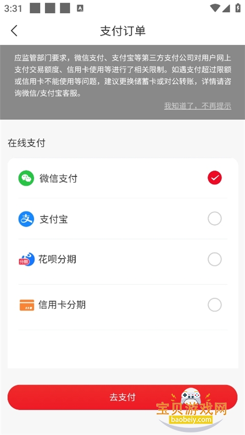 4、选择支付方式(微信/支付宝/银行卡等常用)