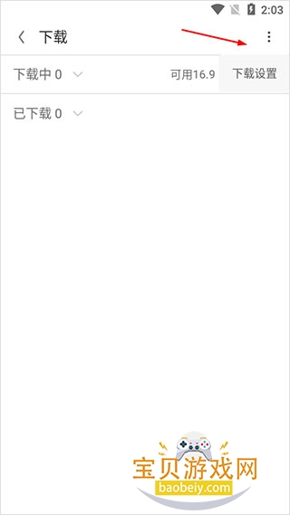 3、这里可以查看下载任务,点击右上方下载设置按钮;