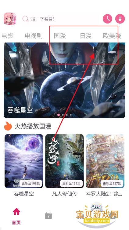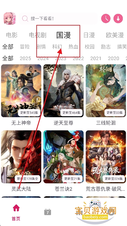 1、进入首页,直接切换到你喜欢的漫画番剧板块