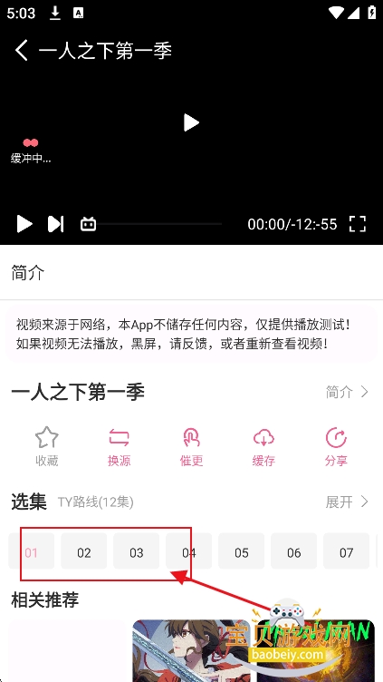 4、进入播放界面,选集进行播放,就能够免费观看了