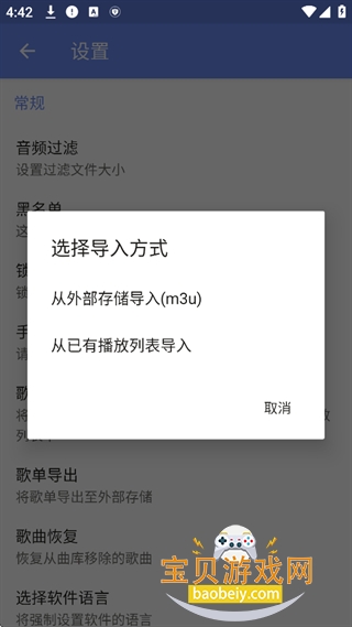 4、选择导入方式,从外部存储导入或者从已有播放列表导入都可以