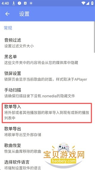 3、找到【歌单导入】将外部或者其他播放器的歌单导入到现有或新的播放列表中