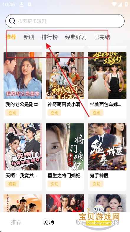 1、进入首页,可以筛选新剧,排行榜,经典好剧,以及已完结的短剧内容