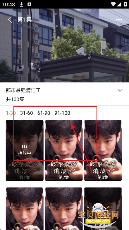 4、进入播放界面,就可以选集进行免费观看了