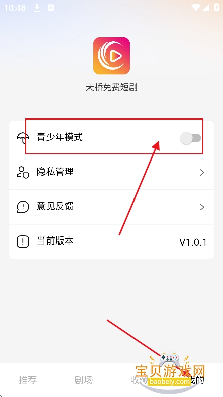 1、进入我的界面,勾选“青少年模式”