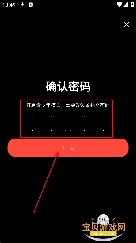 3、然后再次输入密码,点击开启青少年模式就可以了
