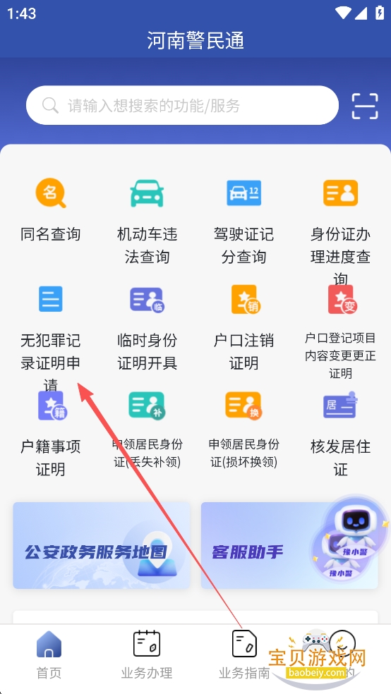 1、打开软件,登录之后,点击【无犯罪记录证明申请】