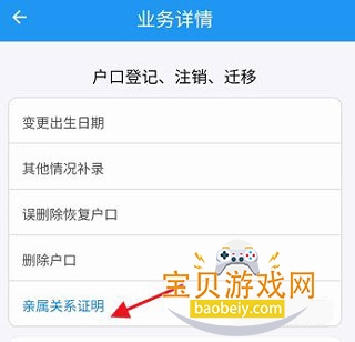 5、进入户口登记、注销、迁移,找到下方的亲属关系证明进入输入相关信息进行查看。