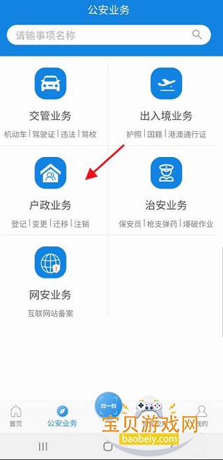 3、进入公安业务,找到下方的户政业务, 点击进入。