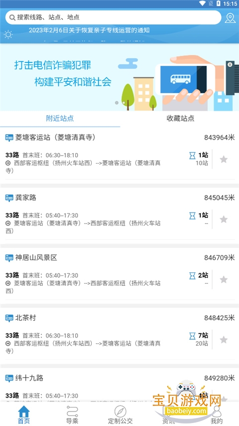 1、首先我们需要下载扬州掌上公交app最新版本,打开进入软件我们看见附近的站点;