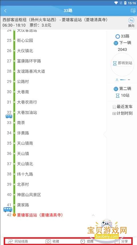 2、点击相应的公交车即可查看当前路线的全部站点,并附带当前位置以及下辆车号;