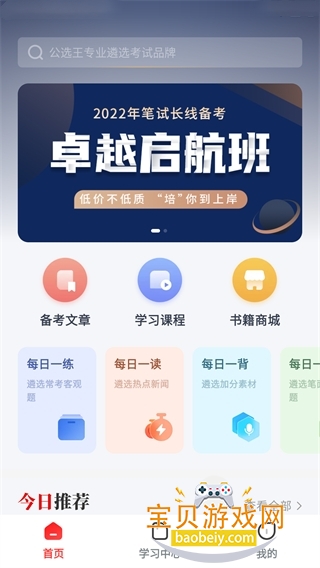 公选王遴选app下载采用了简洁明了的风格,整体布局合理,色彩搭配舒适。首页展示了各个学习板块,并以图文并茂的方式呈现,用户可以一目了然地获取信息。导航栏设计直观,方便用户快速切换不同功能模块,增强了使用的便利性。用户可以通过APP第一时间查看各类遴选相关的最新资讯,包括政策解读、考试动态和招聘信息等。这一功能让考生能够随时了解考试及职业发展的最新情况,增强了备考的针对性。