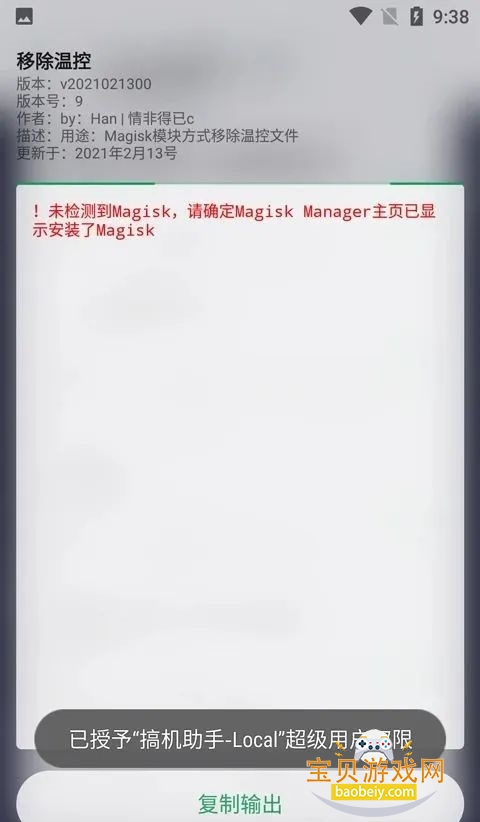 Magisk仓库翻译,支持兼容模式(无需改动直接刷入旧模块)、单个/批量刷入某个目录里的全部Magisk模块、一键将系统ROOT转换为Magisk(即使在无Recovery情况下)、一键备份/恢复Magisk模块、支持一键更新Magisk至最新稳定版本、一键安装Riru - Code、一键安装EDXposed、MIUI专属模块、机型伪装模块、一键安装存储重定向增强模式模块、一键安装AD-Hosts模块、一键安装2.4 GWIFI加速模块、一键转换为太极·阳、一键永久关闭SELinux和临时关闭)、全面屏手势导航、一键永久激活快否,一键将系统ROOT转换为Magisk