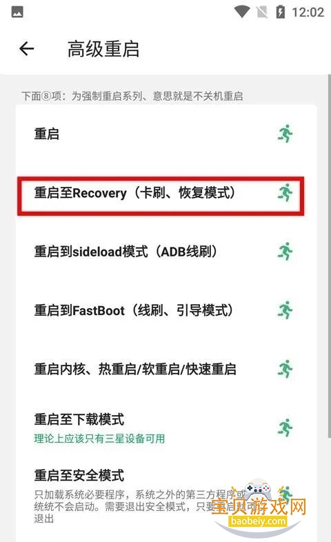 3、直接选择重启至recovery即可;