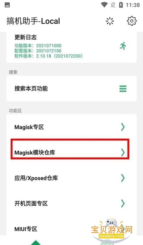 1、在本站下载安装搞机助手Local之后,在功能区找到magisk模板仓库,点击进入;