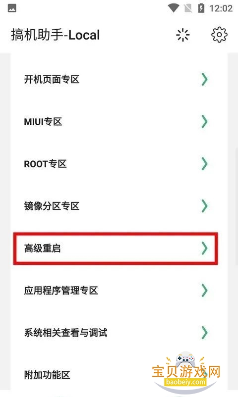 1、进入到软件首页之后,在功能板块中找到高级重启;