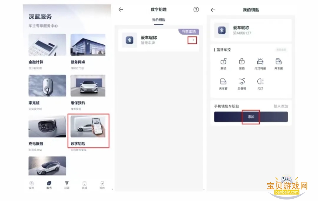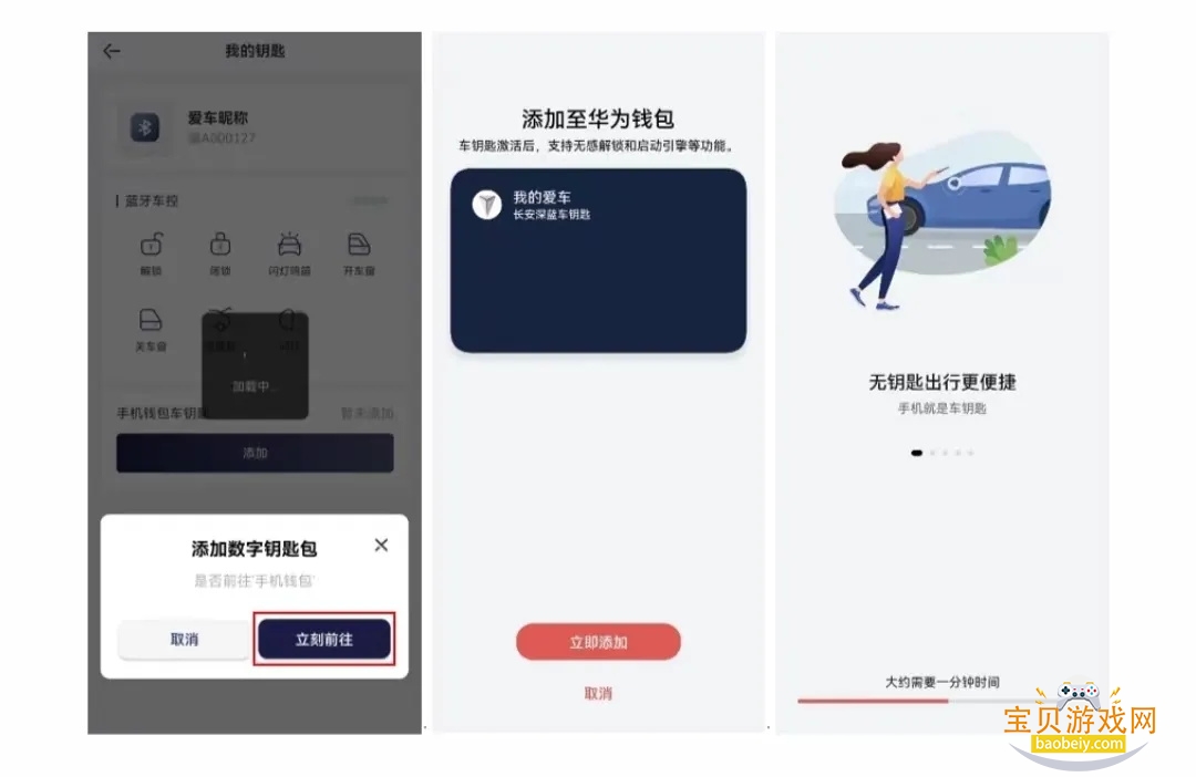 手机安装并打开深蓝App,靠近车辆附近10米范围内,在服务中打开数字钥匙点击当前车辆,点击添加, App界面会弹出“添加数字钥匙包”,选择“立刻前往”后跳转至华为钱包,点击“立即添加”,等待一分钟左右后开通钱包钥匙,开卡成功后,手动配对蓝牙,待钱包页面显示“蓝牙已连接”即表示开卡已成功。