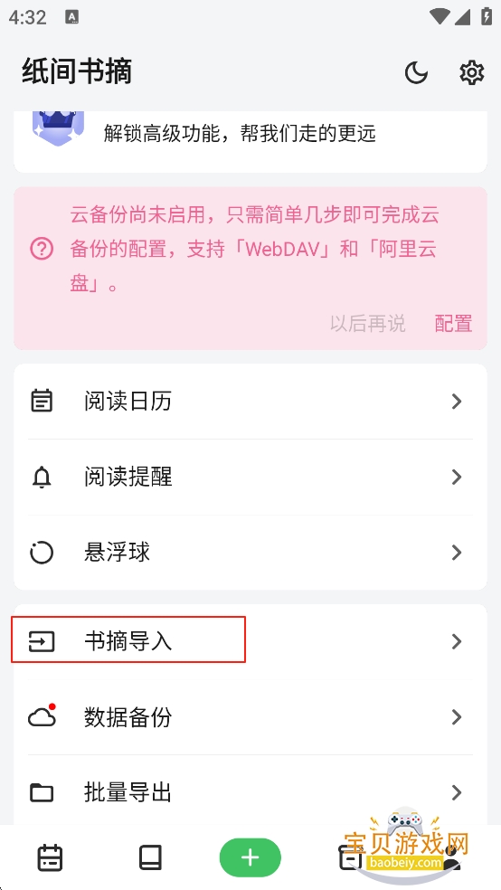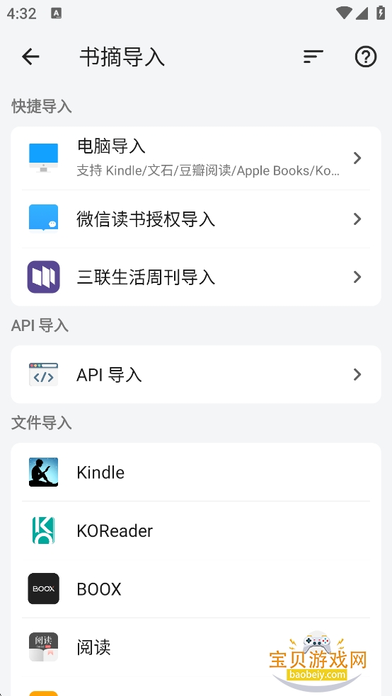 3、进入书摘导入界面,支持快捷导入、API导入和文件导入
