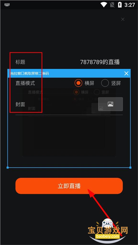 3、设置直播标题、直播模式、添加直播封面,点击立即直播即可。