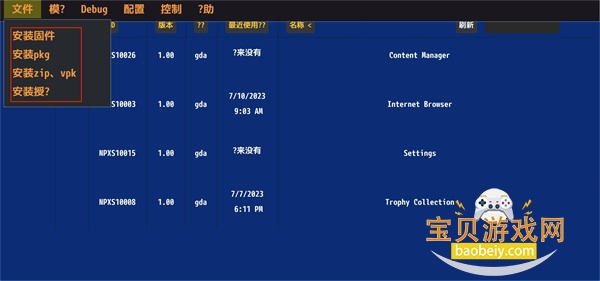 1、双击打开Vita3k模拟器,点击左上角的文件按钮,你可以根据需求选择安装游戏文件的类型;