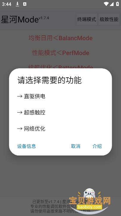 星河mode软件下载,一款专门针对于安卓手机打造的深度优化工具,软件核心通过激活ADB调试权限,借助系统底层接口实现精准优化,无需复杂操作就能改善手机性能表现。它预设了多种场景模式,可智能管控后台进程,有效优化应用启动与切换流畅度,同时兼顾日用流畅与省电需求,让vivo和OPPO用户能根据自身使用场景,轻松提升手机使用体验,且工具体积轻量化,运行无负担。