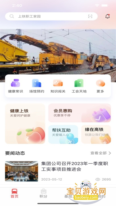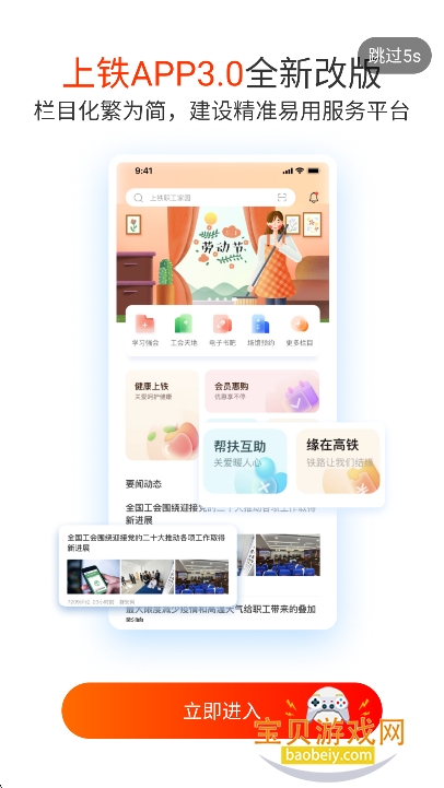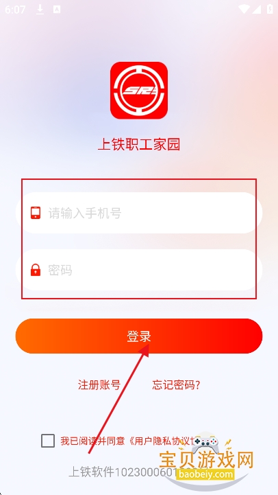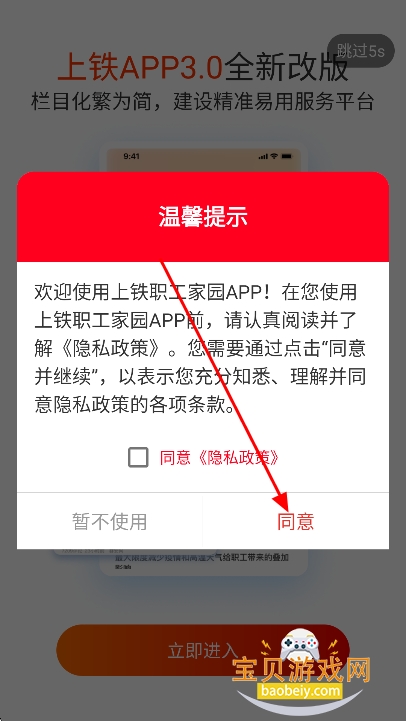 1、在宝贝游戏网下载安装上铁职工家园app安卓版,点击“同意”进入
