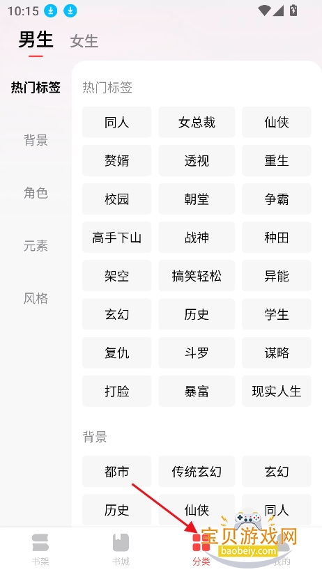 3、进入分类板块,还有更详细的书签分类,根据书签关键词,精准筛选喜欢的小说类型