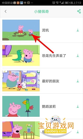2、打开儿歌点点视频剧集列表,然后点击视频“封面”。