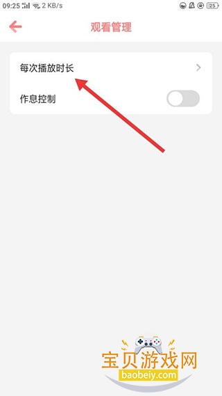 3、进入到观看管理界面后,再点击每次播放时长选项即可。