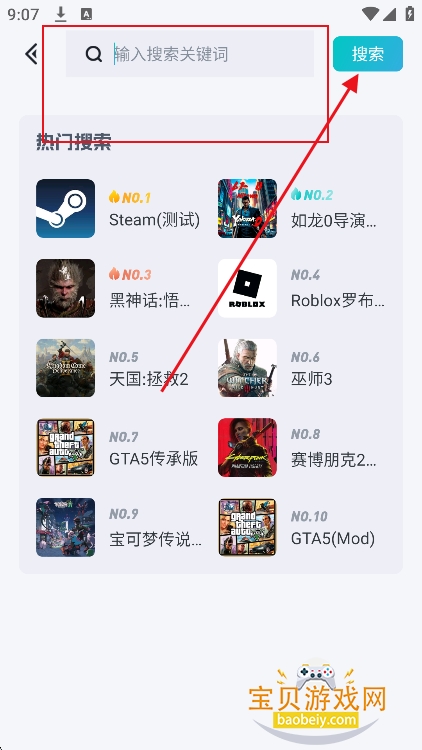 3、点击右上角搜索框,输入关键词,可以精准检索游戏