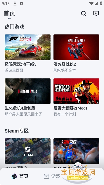 -1.多板块游戏聚合:内置热门、最新上架、限免、Steam专区等板块,覆盖3A大作、单机精品、联机游戏等,分类清晰,找游更高效;