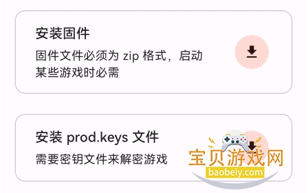 密钥为key结尾的文件,固件文件必须为zip格式的文件,这两个文件是启动部分游戏必不可少的。