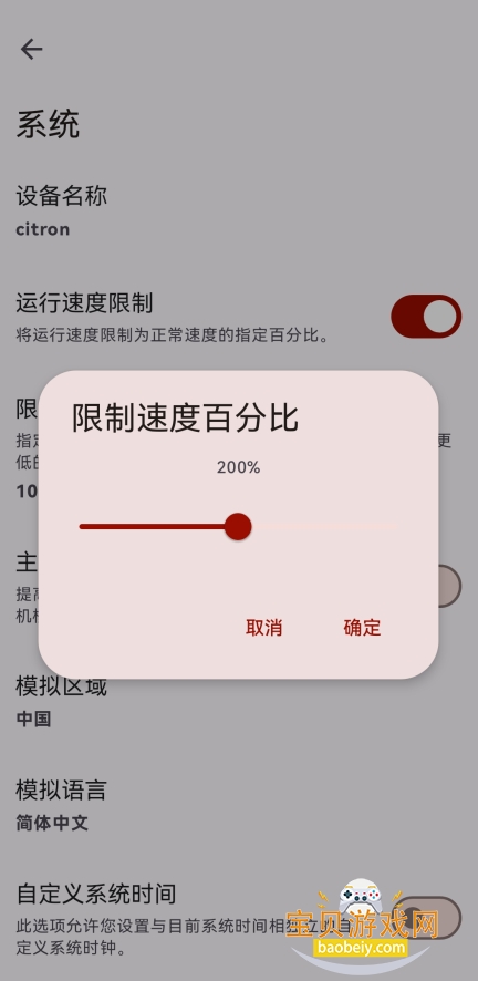 7、在打开之前我们来到【高级选项】-【系统】,把【限制速度百分比】拉到200左右。
