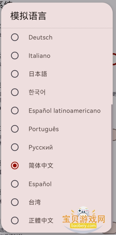 4、之后再点击【模拟语言】,把【English】改为【简体中文】。这样改完大部分游戏进去之后就都是中文了。