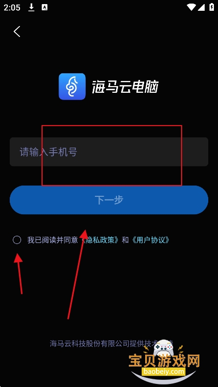 1、在宝贝游戏网下载安装海马云电脑手机版,点击同意进入