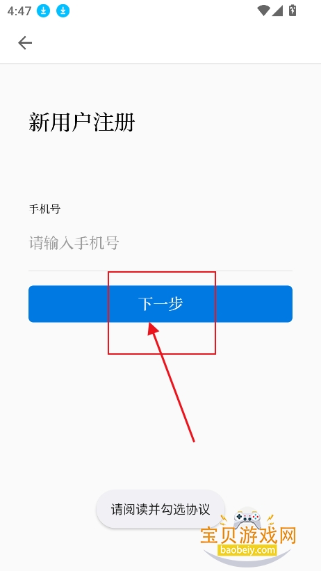 3、新用户直接点击新用户注册,输入手机号验证注册