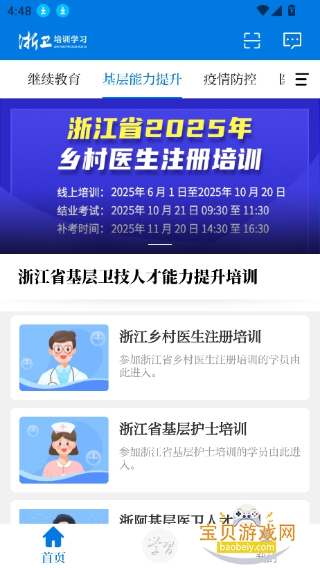 浙卫培训学习官方版下载,是浙江省官方专为省内卫生专业技术人员打造的“一站式”学习服务工具,软件聚焦卫生人员专业提升需求,整合权威医学课程资源,涵盖新闻通知、在线学习、签到考勤、在线考试、学分申请等全流程服务,适配医护人员、卫生行业从业者碎片化学习与规范化培训场景,助力用户夯实专业基础、掌握前沿技术、完成继续教育考核,全方位提升专业素养与执业能力。