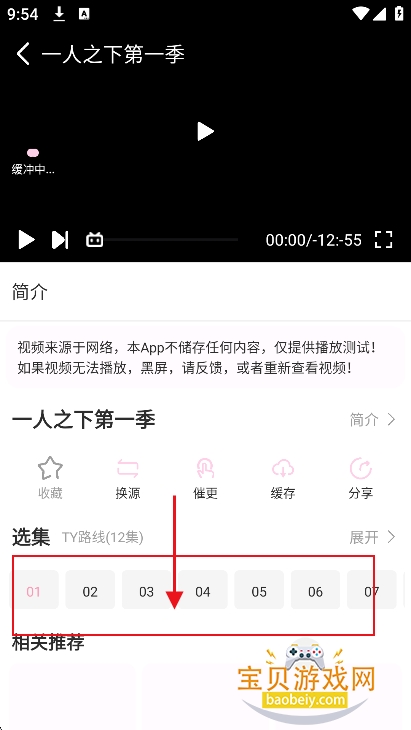 5、进入播放界面,选集进行播放即可