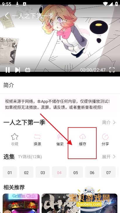 1、同样,进入播放界面,点击缓存