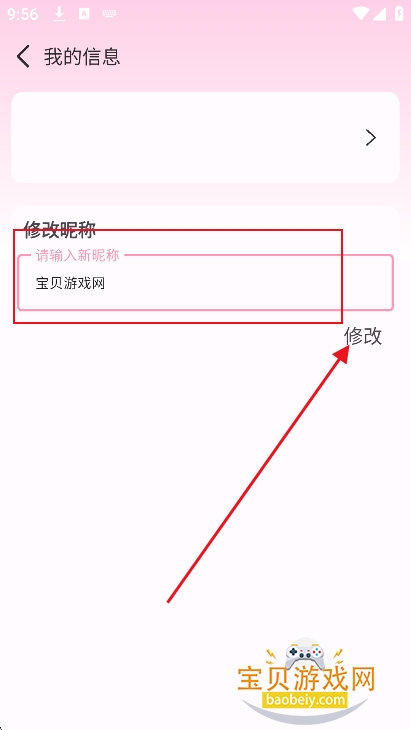 2、输入昵称,点击修改,返回首页即可
