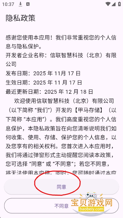 1、在宝贝游戏网下载安装,点击“同意”进入