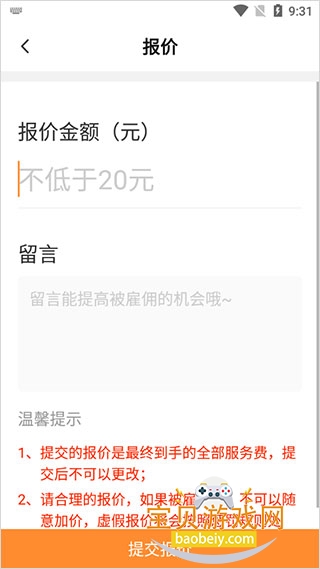 4、当填写完报价时,点击提交报价,最后等待业主同意即可执行订单。