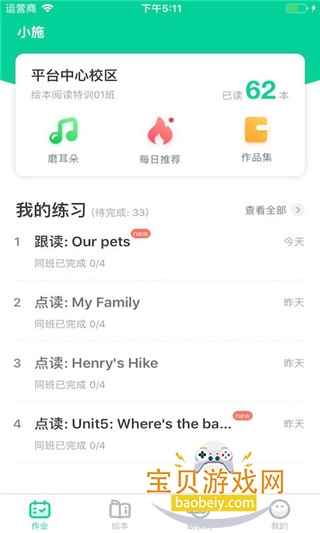 2、在作业界面中可以选择要听读的绘本