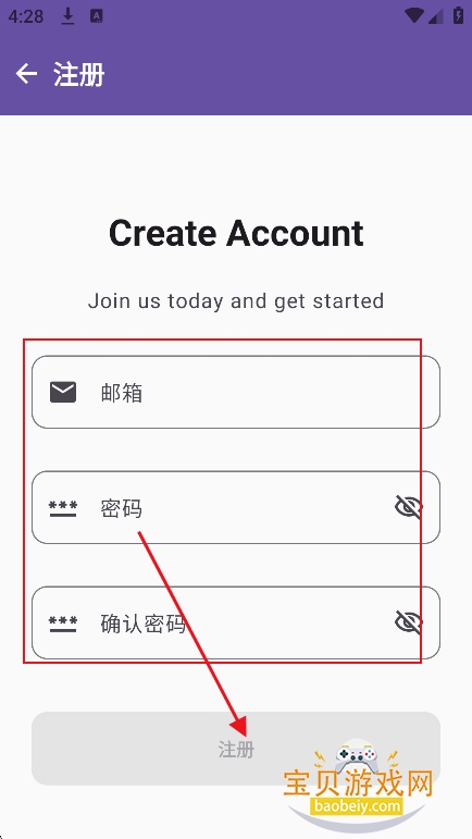3、新用户直接点击下方注册,输入基本信息,点击注册即可