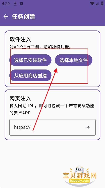 3、可以选择网页注入,或者apk注入,选择注入方式