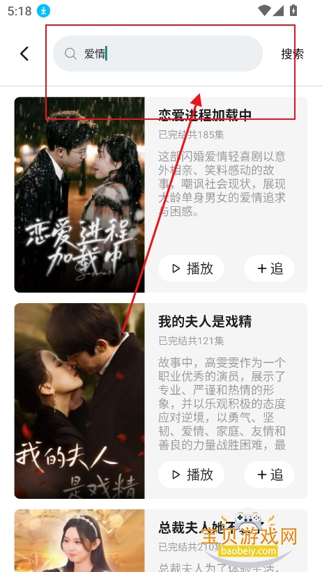 4、或者点击搜索框,输入关键词,精准检索短剧