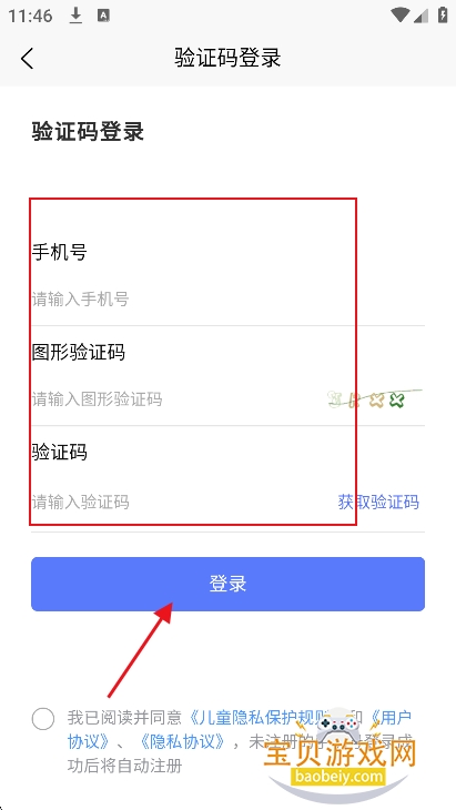 3、选择手机号验证登录,新手机号自动注册为新账号