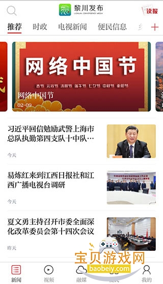 3、融媒页面是黎川融媒体官方为用户打造的读报、电视、广播、微博、微信、网站六大板块,用户可根据需要进入